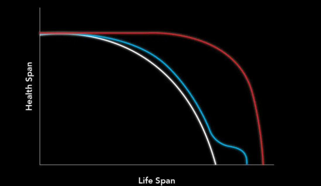 We are aiming for the red curve— to live in good health for as long as possible.